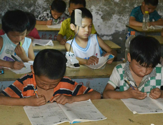 鄉(xiāng)村小學(xué),沒(méi)有體育器材,沒(méi)有娛樂(lè)設(shè)施,孩子們只能選擇自?shī)首詷?lè)。有次,志愿者們看到孩子們用一根細(xì)樹(shù)棍,一塊石柱,就玩起了翹翹板。每到夜晚,志愿者的住處就擠滿了學(xué)生,大家或做游戲,或一起用筆記本電腦看哆啦A夢(mèng),從孩子們看動(dòng)畫(huà)片的那份專注,志愿者們看得出來(lái),孩子們很少能看到這種動(dòng)畫(huà)片。天陰教室昏暗,加上學(xué)校經(jīng)常斷電,孩子們不得不在陰暗的環(huán)境中上課。老師拿來(lái)自己的小臺(tái)燈給在角落的孩子照明,即使在這樣的情況下,孩子們依然學(xué)習(xí)很認(rèn)真。申倩老師應(yīng)該是最受歡迎的啦,她多次收到孩子們的“示愛(ài)書(shū)信”,那些小紙條上往往寫(xiě)著“音樂(lè)老師你唱的歌很好聽(tīng),我喜歡你”