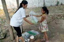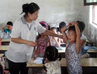 志愿者宋文靜是付里莊小學(xué)手語(yǔ)老師,是團(tuán)隊(duì)隊(duì)員和孩子們公認(rèn)的富有童趣的一小老師。她經(jīng)常陪孩子們做游戲,陪他們看哆啦A夢(mèng)。但就是這樣一位老師,上了課堂卻像換了個(gè)人似的,非常嚴(yán)厲。志愿者王蒙苗是付里莊小學(xué)口才勵(lì)志課老師。課堂上,她認(rèn)真教學(xué),課堂下用勵(lì)志故事激勵(lì)孩子們努力學(xué)習(xí)。因?yàn)榻?jīng)常照顧生病的孩子,孩子們認(rèn)為她最有愛(ài)的一個(gè)老師。志愿者孔令陵是后勤人員之一及封丘支教教務(wù)主任。她每天都會(huì)在五點(diǎn)去最近的商店買(mǎi)菜,然后摘菜、洗菜,做整個(gè)團(tuán)隊(duì)和部分孩子的飯菜,保障全隊(duì)生活