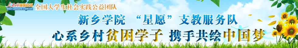 “星愿”義務(wù)支教服務(wù)隊(duì)于2009年成立,現(xiàn)有支教志愿者120余名。除多次開(kāi)展暑期社會(huì)實(shí)踐支教活動(dòng)外,在校期間他們還堅(jiān)持每周二下午赴貧困小學(xué)義務(wù)支教活動(dòng)。五年來(lái),他們參與支教的次數(shù)達(dá)100余次,9000余小時(shí)課時(shí)。他們與新鄉(xiāng)市紅旗區(qū)平原小學(xué)、封丘縣潘店鎮(zhèn)老莊小學(xué)建立了長(zhǎng)期幫扶關(guān)系,還在延津縣榆林鄉(xiāng)大榆林小學(xué)、夾堤小學(xué)建立了愛(ài)心支教服務(wù)基地。