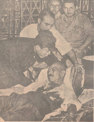 1945年8月,日本無條件投降后不久,東條英機(jī)自知罪責(zé)難逃,舉槍自殺。圖示他中彈獲救時(shí)之痛苦情狀。作為頭號戰(zhàn)犯,他在獲救后仍被送上絞刑架。三絞廢命。