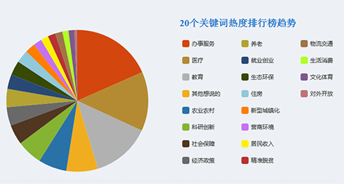 圍繞群眾關(guān)切,本次征集活動共設(shè)置了20類話題。辦事服務(wù)、醫(yī)療、教育是網(wǎng)友關(guān)注的重點(diǎn),位居話題榜前三位?蒲袆(chuàng)新、農(nóng)業(yè)農(nóng)村、社會保障、養(yǎng)老、經(jīng)濟(jì)政策、生態(tài)環(huán)保、住房分列四到十位。