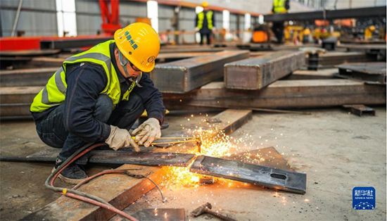 2月1日,工人在納晴高速六枝特大橋項(xiàng)目現(xiàn)場(chǎng)施工。新華社記者 陶亮 攝
